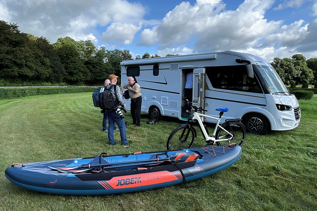 Alle Fotomotive für die Journalisten wurden mit Reisemobile und Caravans sowie Wassersport- und Freizeitgeräten von uns ausgestattet, welche dem aktuellen Trend im der Freizeitbranche darstellten. Hierbei konnten wir die Partner unserer Roadshow mit in Boot holen. So standen Luftboote von Jobe, Faltboote von Chris Kayaks und E-Bikes von Rose für die Journalisten zur Verfügung. Auch unsere eigenen SUPs sorgten für eine farbenfrohe Abwechslung bei den „größeren“ Motiven.