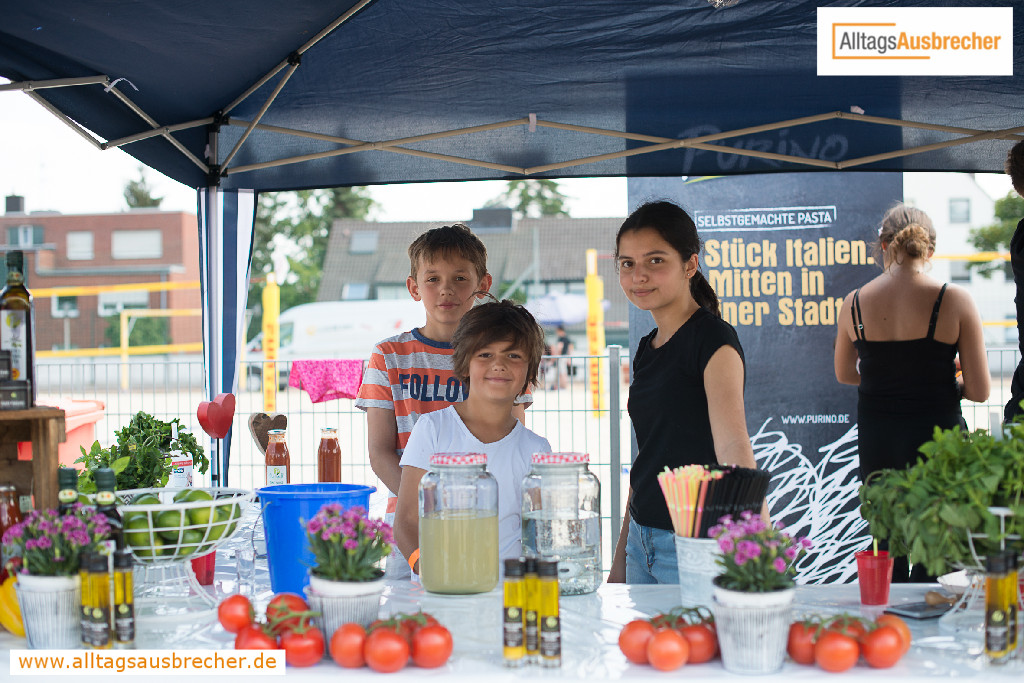 Außerdem führen wir jeden Sommer das „Alltagsausbrecher Familienfest“ in Mönchengladbach durch. Dabei bieten wir diverse kostenlose Attraktionen für Groß und Klein an – bei rund 20 Aktionsstationen haben Familien die Möglichkeit aktiv zu werden.